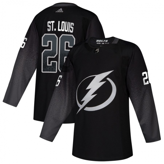Men's Adidas Tampa Bay Lightning #26 Martin St. Louis Authentic Black Team Logo Fashion NHL Jersey