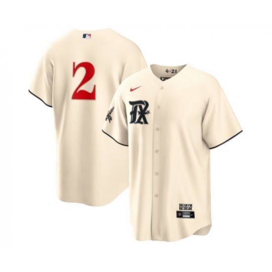 >Men's Texas Rangers #2 Marcus Semien Cream 2023 City Connect Cool Base Stitched Baseball Jersey