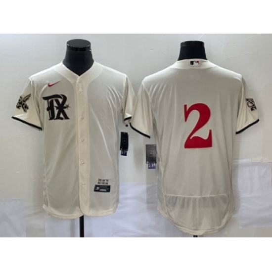Men's Texas Rangers #2 Marcus Semien Cream 2023 City Connect Flex Base Stitched Jersey