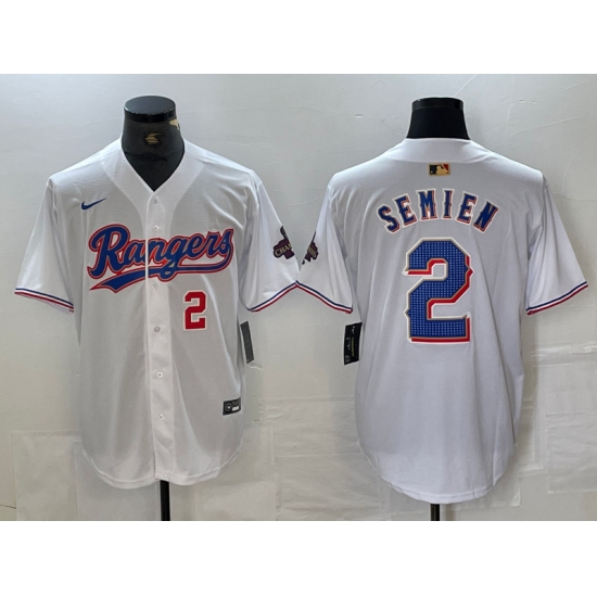Men's Texas Rangers #2 Marcus Semien 2023 White World Series Stitched Baseball Jersey