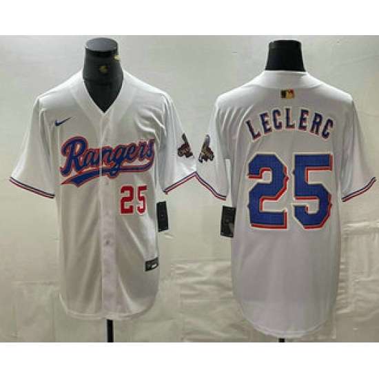 Men's Texas Rangers #25 Jose Leclerc White Home Flex Base Authentic Collection Baseball Player Jersey