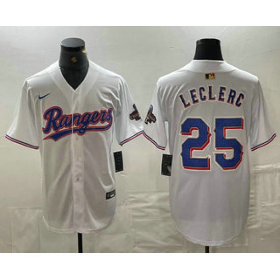 Men's Nike Texas Rangers #25 Jose Leclerc White Cooperstown Collection Home Stitched Baseball Jersey