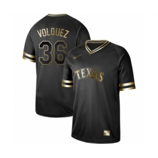 >Men's Texas Rangers #36 Edinson Volquez Authentic Black Gold Fashion Baseball Jersey