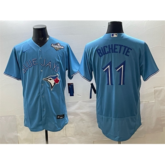 >Men's Toronto Blue Jays #11 Bo Bichette Blue 2025 World Series Flex Base Stitched Baseball Jersey