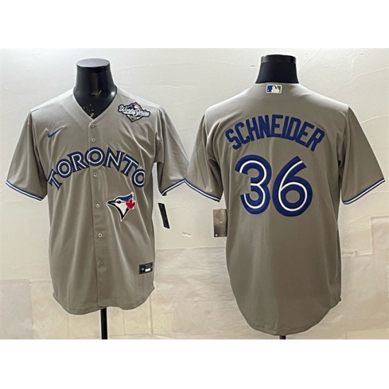 Men's Toronto Blue Jays #36 Davis Schneider Gray 2025 World Series Cool Base Stitched Baseball Jersey