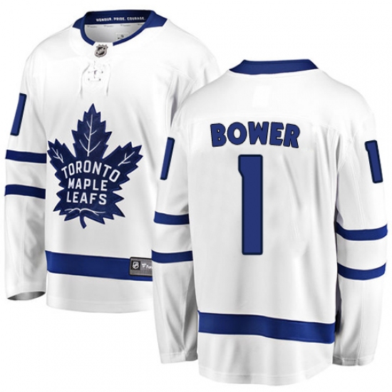 Men's Toronto Maple Leafs #1 Johnny Bower Fanatics Branded White Away Breakaway NHL Jersey