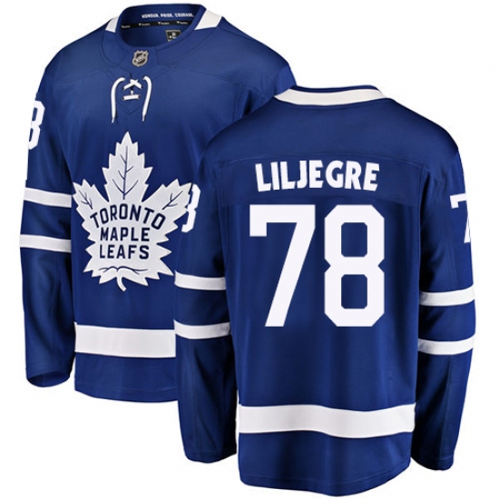 Men's Toronto Maple Leafs #78 Timothy Liljegren Authentic Royal Blue Home Fanatics Branded Breakaway NHL Jersey