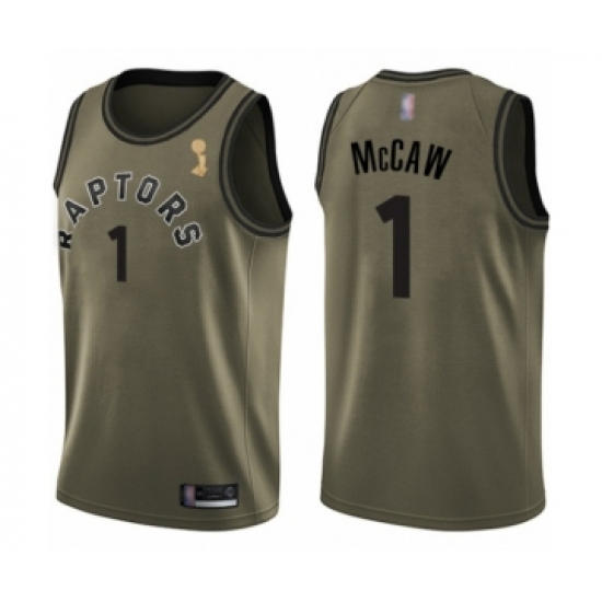 >Men's Toronto Raptors #1 Patrick McCaw Swingman Green Salute to Service 2019 Basketball Finals Champions Jersey