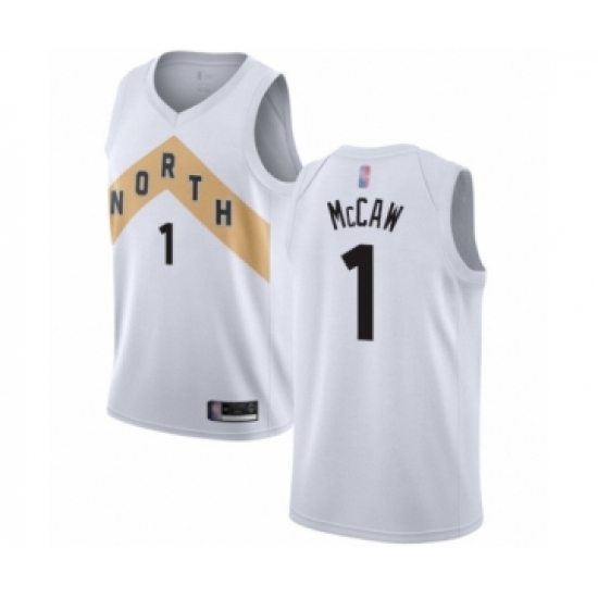 >Men's Toronto Raptors #1 Patrick McCaw Swingman White Basketball Jersey - City Edition