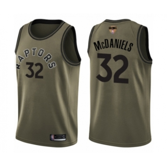 >Men's Toronto Raptors #32 KJ McDaniels Swingman Green Salute to Service 2019 Basketball Finals Bound Jersey