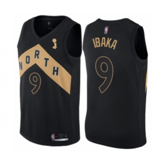 >Men's Toronto Raptors #9 Serge Ibaka Swingman Black 2019 Basketball Finals Champions Jersey - City Edition
