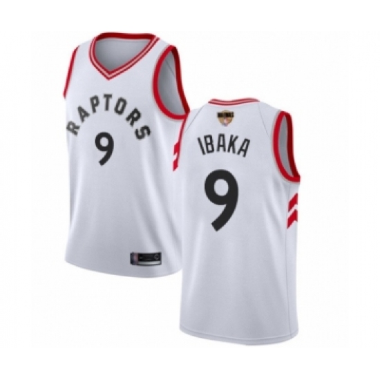 >Men's Toronto Raptors #9 Serge Ibaka Swingman White 2019 Basketball Finals Bound Jersey - Association Edition
