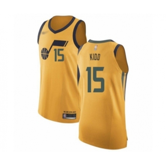 Men's Utah Jazz #15 Stanton Kidd Authentic Gold Basketball Jersey Statement Edition
