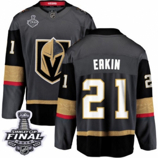 >Men's Vegas Golden Knights #21 Cody Eakin Authentic Black Home Fanatics Branded Breakaway 2018 Stanley Cup Final NHL Jersey