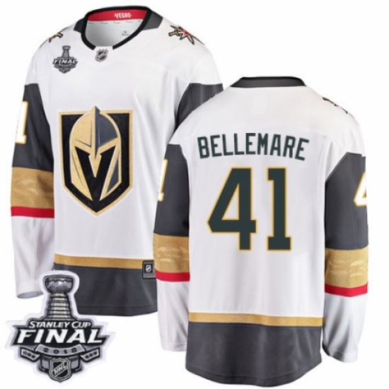 Men's Vegas Golden Knights #41 Pierre-Edouard Bellemare Authentic White Away Fanatics Branded Breakaway 2018 Stanley Cup Final NHL Jersey