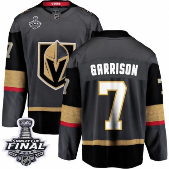 Men's Vegas Golden Knights #7 Jason Garrison Authentic Black Home Fanatics Branded Breakaway 2018 Stanley Cup Final NHL Jersey