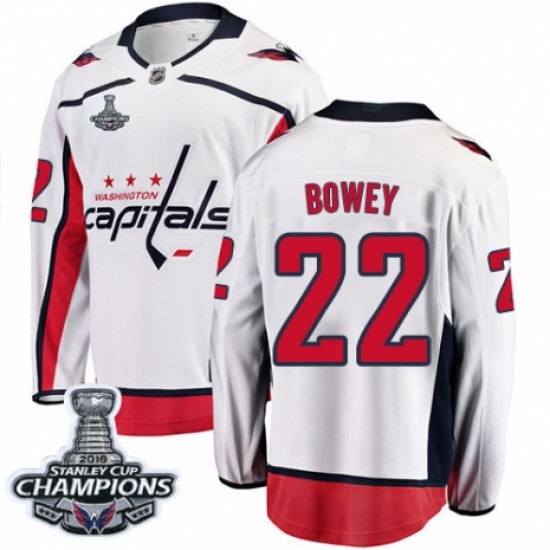 >Men's Washington Capitals #22 Madison Bowey Fanatics Branded White Away Breakaway 2018 Stanley Cup Final Champions NHL Jersey