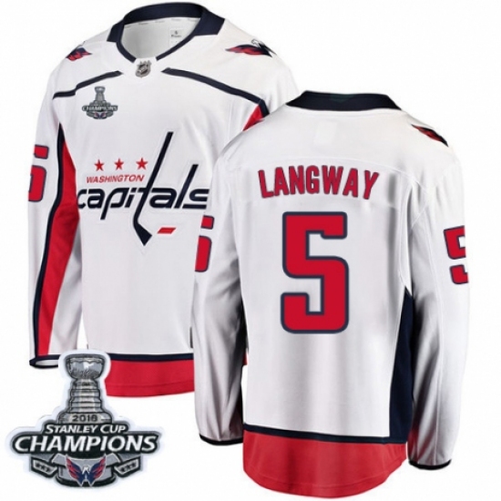 Men's Washington Capitals #5 Rod Langway Fanatics Branded White Away Breakaway 2018 Stanley Cup Final Champions NHL Jersey