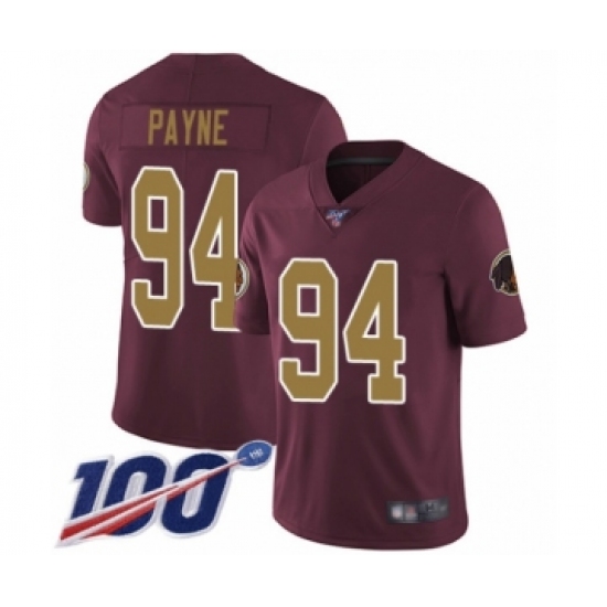 Men's Washington Redskins #95 Da'Ron Payne Burgundy Red Team Color Vapor Untouchable Limited Player 100th Season Football Jersey