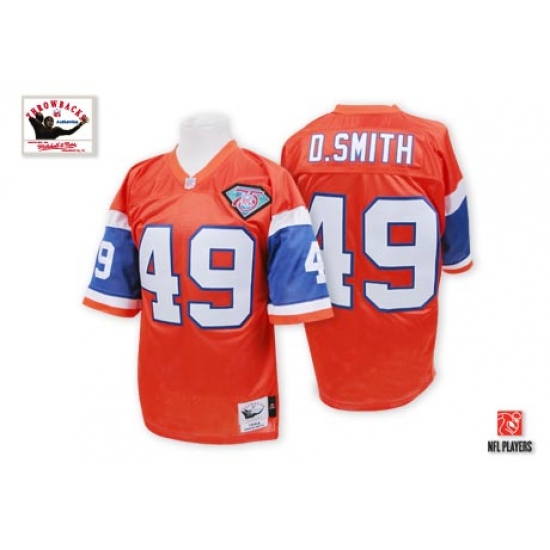 Feel like part of your favorite team by wearing this NFL® Mitchell And Ness Denver Broncos #49 Dennis Smith Orange Authentic Throwback NFL Jersey, made of thick, high-quality Pro-Brite fabric for a genuine gridiron look. The players number which 100% stitched is displayed in tackle twill on the chest, back and sleeves, along with the team name on the front. The players name which 100% stitched is displayed on a sewn-down nameplate at the back. 100% Pro-Brite nylon and 100% Pro-Brite polyester for body, 100% lycratalic spandex dazzle for Side Panels/Collar/Cuffs, NFL® Equipment patch sewn on the bottom of the front collar or fabric insert, NFL® Equipment jock tag with numeric sizing is applied to the lower left bottom of the jersey, Officially licensed.