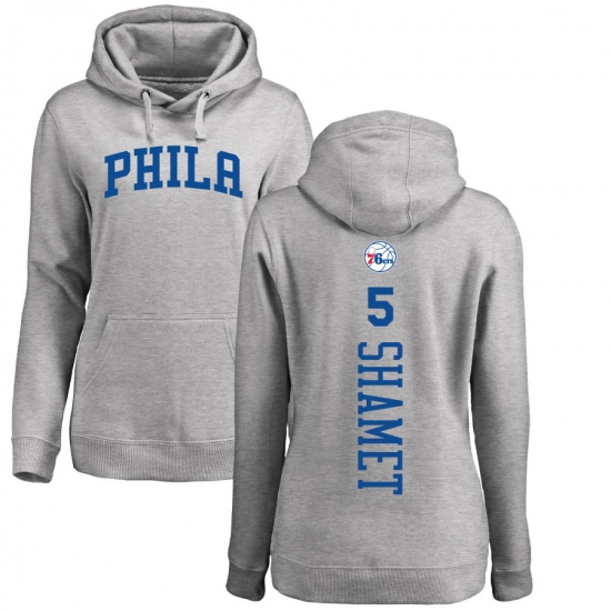 >NBA Women's Nike Philadelphia 76ers #5 Landry Shamet Ash Backer Pullover Hoodie