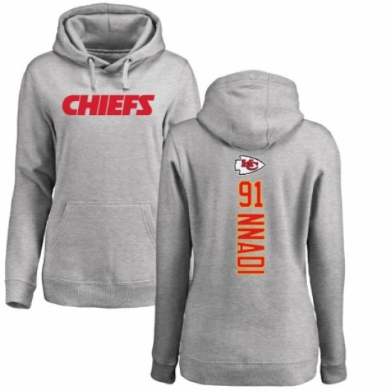 >NFL Women's Nike Kansas City Chiefs #91 Derrick Nnadi Ash Backer Pullover Hoodie