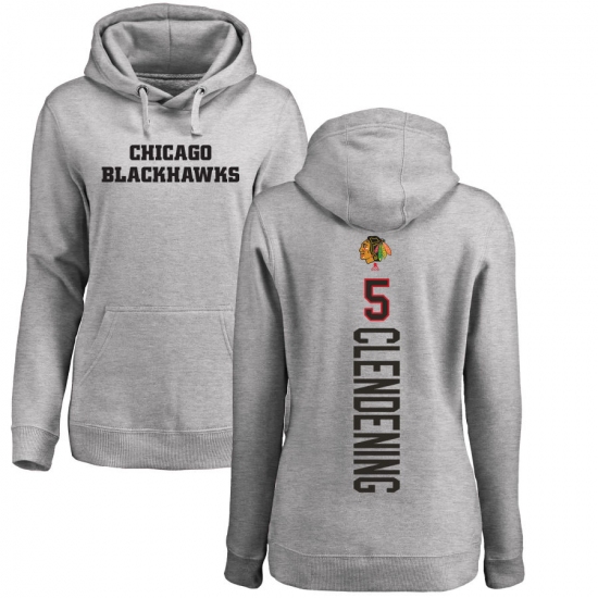 >NHL Women's Adidas Chicago Blackhawks #5 Adam Clendening Ash Backer Pullover Hoodie