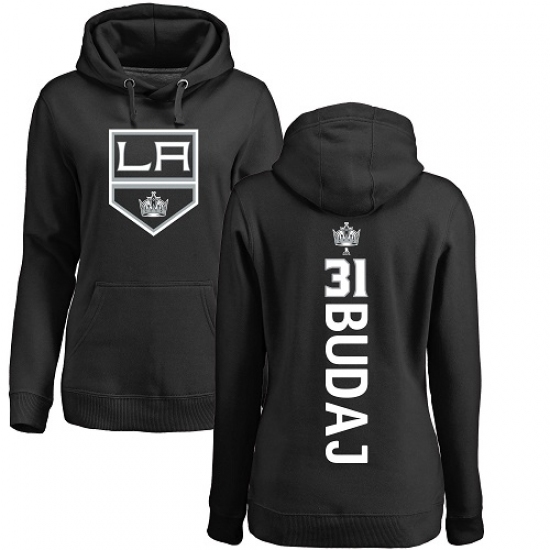 >NHL Women's Adidas Los Angeles Kings #31 Peter Budaj Black Backer Pullover Hoodie