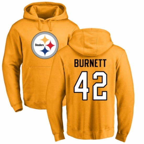 Nike Pittsburgh Steelers #42 Morgan Burnett Gold Name & Number Logo Pullover Hoodie