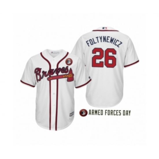 >Women 2019 Armed Forces Day Mike Foltynewicz #26 Atlanta Braves White Jersey