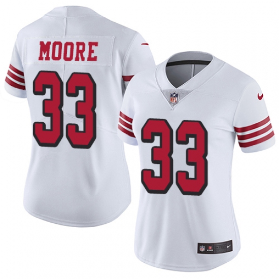>Women Nike San Francisco 49ers #33 Tarvarius Moore Limited White Rush Vapor Untouchable NFL Jersey