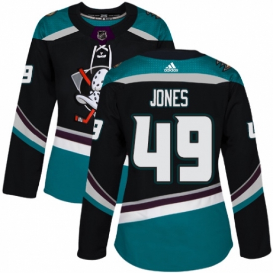 Women's Adidas Anaheim Ducks #49 Max Jones Premier Black Teal Alternate NHL Jersey