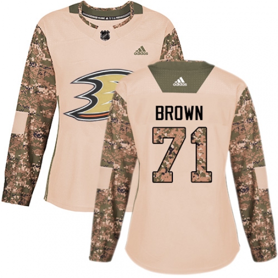 Women's Adidas Anaheim Ducks #71 J.T. Brown Authentic Camo Veterans Day Practice NHL Jersey