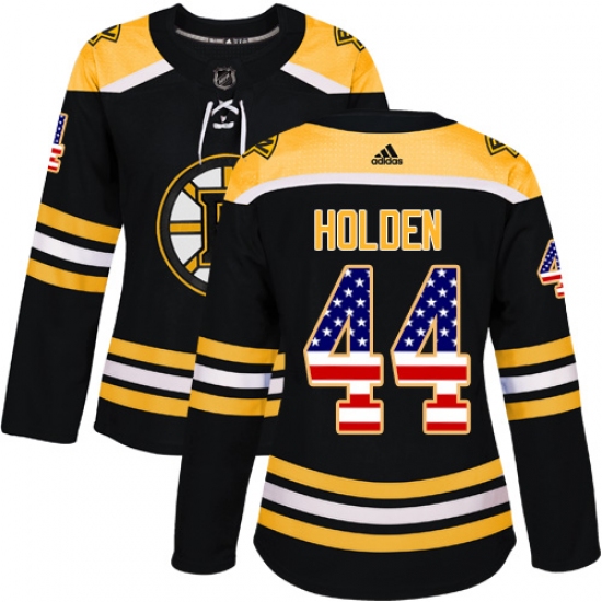 >Women's Adidas Boston Bruins #44 Nick Holden Authentic Black USA Flag Fashion NHL Jersey
