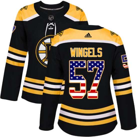 Women's Adidas Boston Bruins #57 Tommy Wingels Authentic Black USA Flag Fashion NHL Jersey