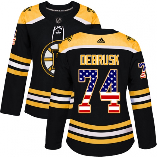 Home>NHL>Boston Bruins>Jake DeBrusk>Women's Adidas Boston Bruins #74 Jake DeBrusk Authentic Black USA Flag Fashion NHL Jersey