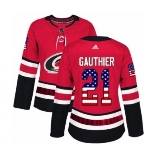 Women's Adidas Carolina Hurricanes #21 Julien Gauthier Authentic Red USA Flag Fashion NHL Jersey Jersey