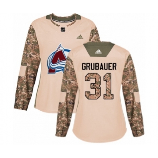 >Women's Adidas Colorado Avalanche #31 Philipp Grubauer Authentic Camo Veterans Day Practice NHL Jersey