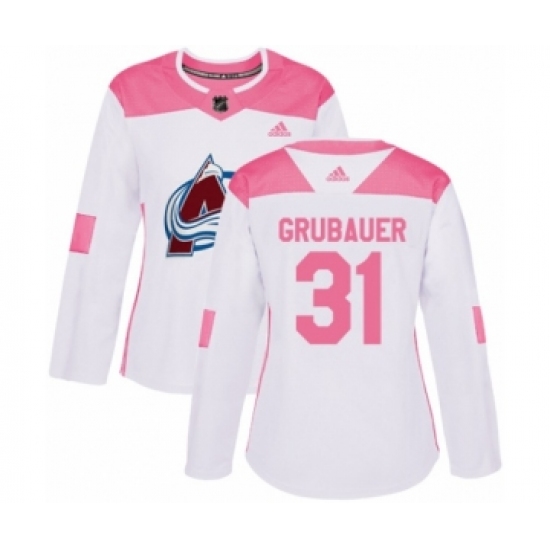 Women's Adidas Colorado Avalanche #31 Philipp Grubauer Authentic White Pink Fashion NHL Jersey