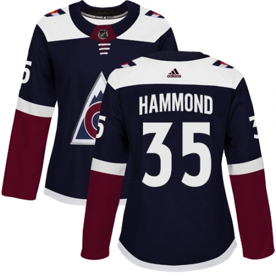 >Women's Adidas Colorado Avalanche #35 Andrew Hammond Authentic Navy Blue Alternate NHL Jersey
