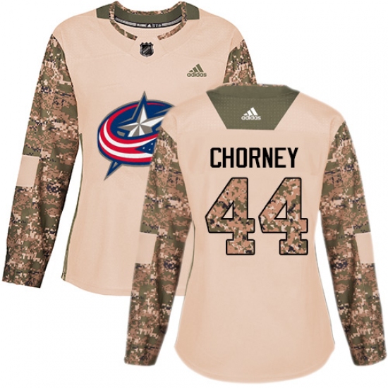 >Women's Adidas Columbus Blue Jackets #44 Taylor Chorney Authentic Camo Veterans Day Practice NHL Jersey