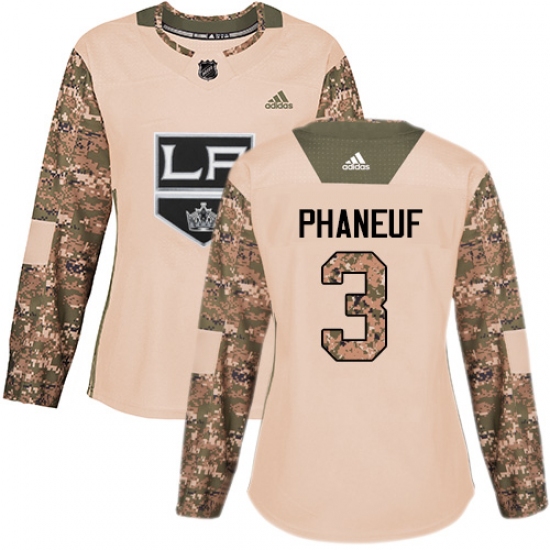 Women's Adidas Los Angeles Kings #3 Dion Phaneuf Authentic Camo Veterans Day Practice NHL Jersey