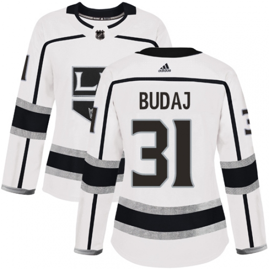Women's Adidas Los Angeles Kings #31 Peter Budaj Authentic White Away NHL Jersey