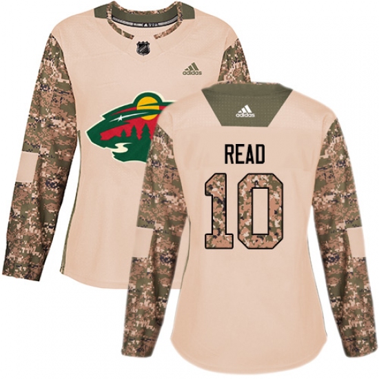 >Women's Adidas Minnesota Wild #10 Matt Read Authentic Camo Veterans Day Practice NHL Jersey