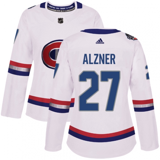 >Women's Adidas Montreal Canadiens #27 Karl Alzner Authentic White 2017 100 Classic NHL Jersey