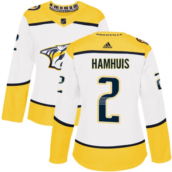 >Women's Adidas Nashville Predators #2 Dan Hamhuis Authentic White Away NHL Jersey