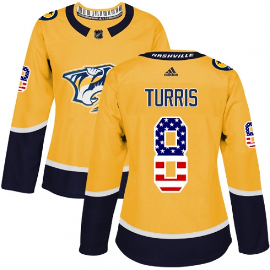 Women's Adidas Nashville Predators #8 Kyle Turris Authentic Gold USA Flag Fashion NHL Jersey