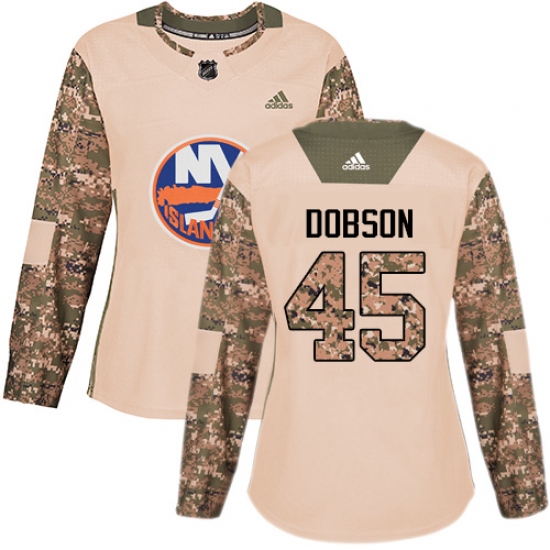 >Women's Adidas New York Islanders #45 Noah Dobson Authentic Camo Veterans Day Practice NHL Jersey