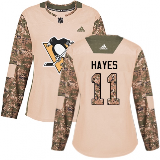 >Women's Adidas Pittsburgh Penguins #11 Jimmy Hayes Authentic Camo Veterans Day Practice NHL Jersey