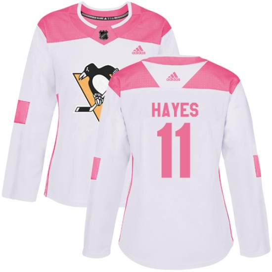 Women's Adidas Pittsburgh Penguins #11 Jimmy Hayes Authentic White Pink Fashion NHL Jersey